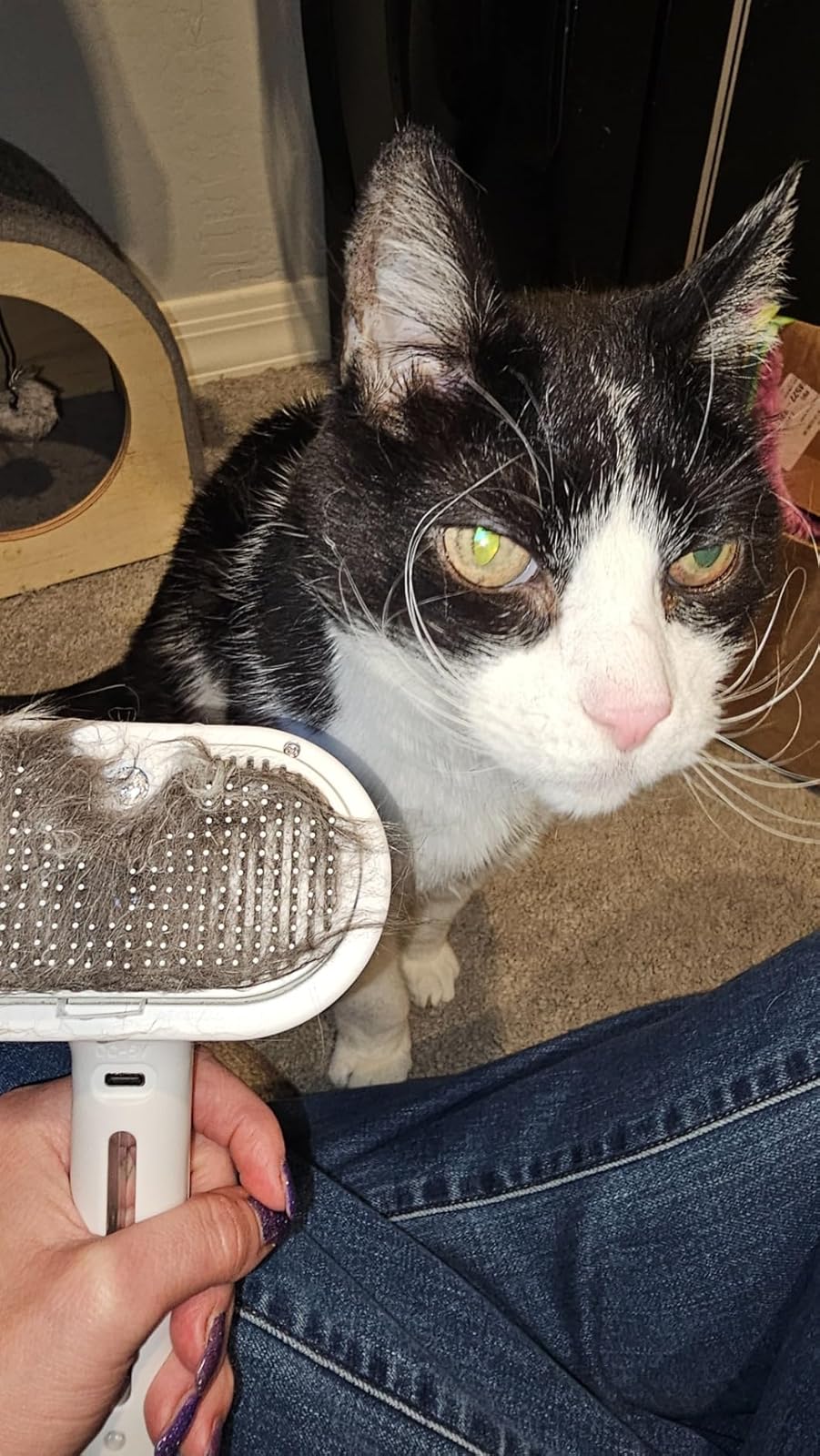 Simply fill the small tank with water (or a pet-safe solution). When brushing, a gentle mist helps soften fur, reduce static, and make grooming more comfortable.